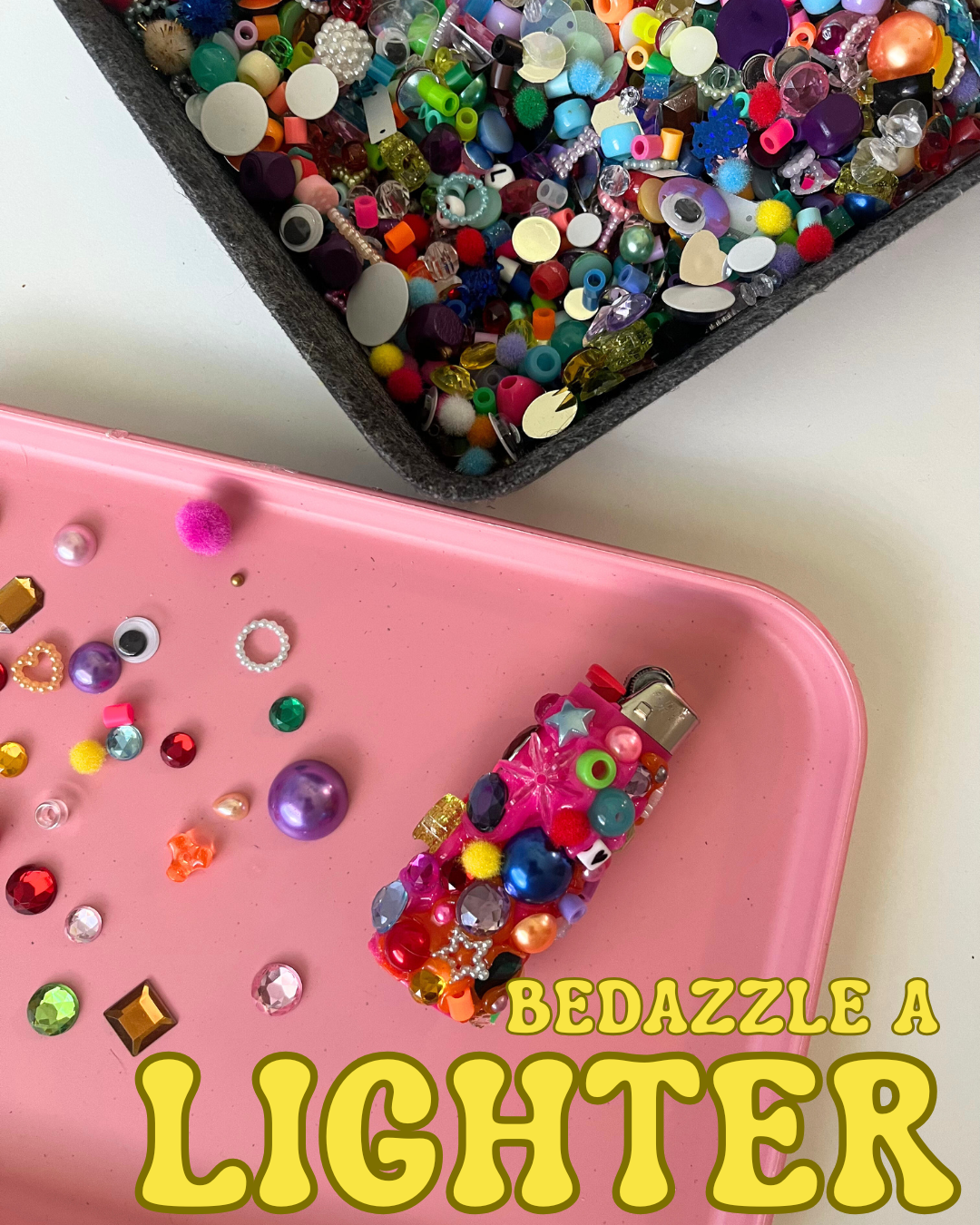Turn an everyday lighter into a pocket sized masterpiece!! Each kit comes with a scoop of Bead Soup (rhinestones, pom poms, googly eyes, beads and sparkle galore!), colored hot glue and of course a Bic lighter. Let us know in the Notes at checkout if you have any color preferences or letter beads you'd like us to include!